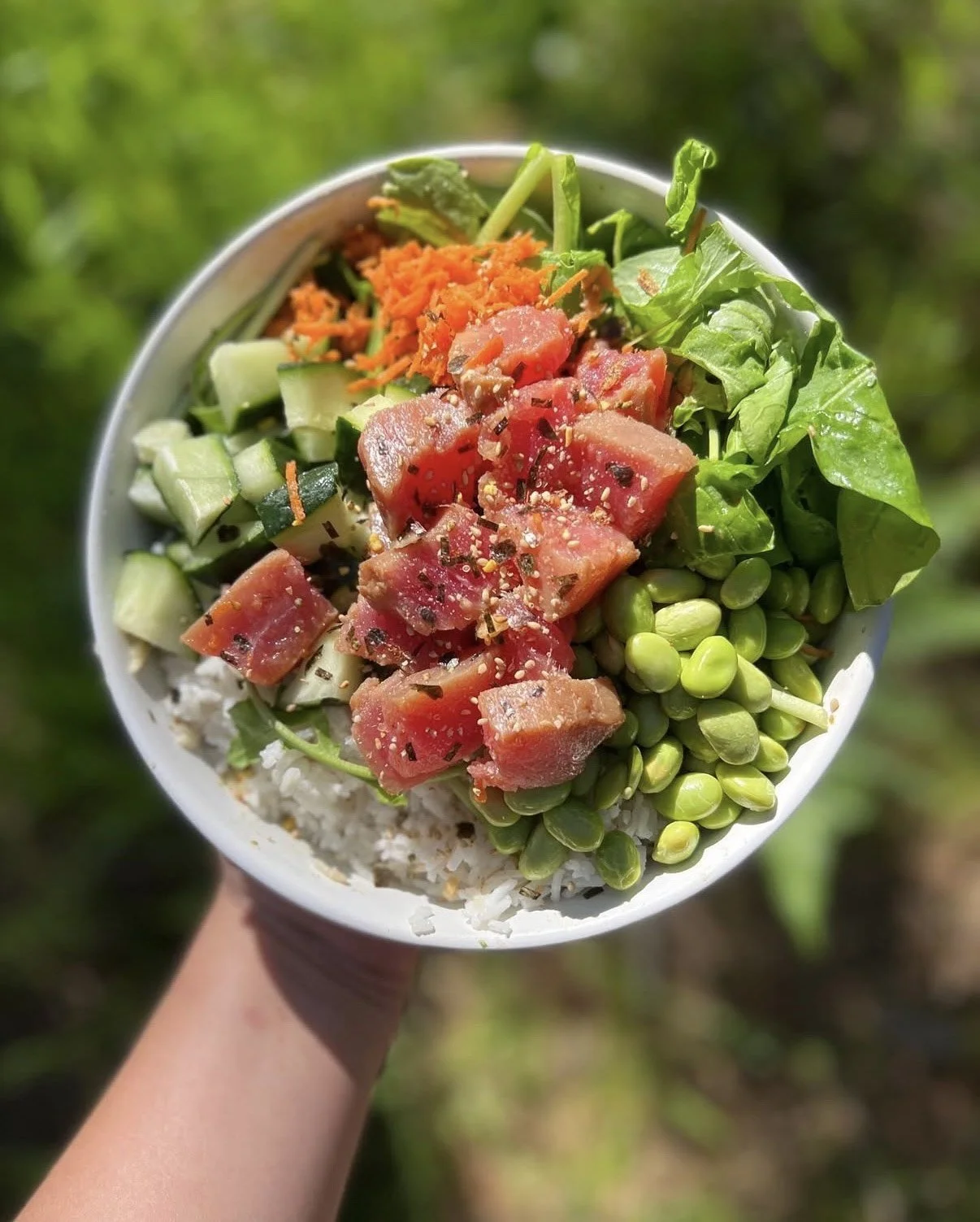 I remember him opening the package up and letting me try a cube. I definitely hyperfixated on that deliciousness and was on the hunt for poke all the time. There were several spots that had it, and I was inspired by all the color and flavor that’s packed into a poke bowl.