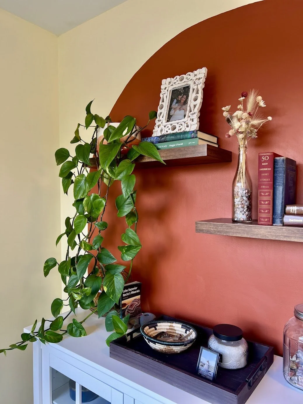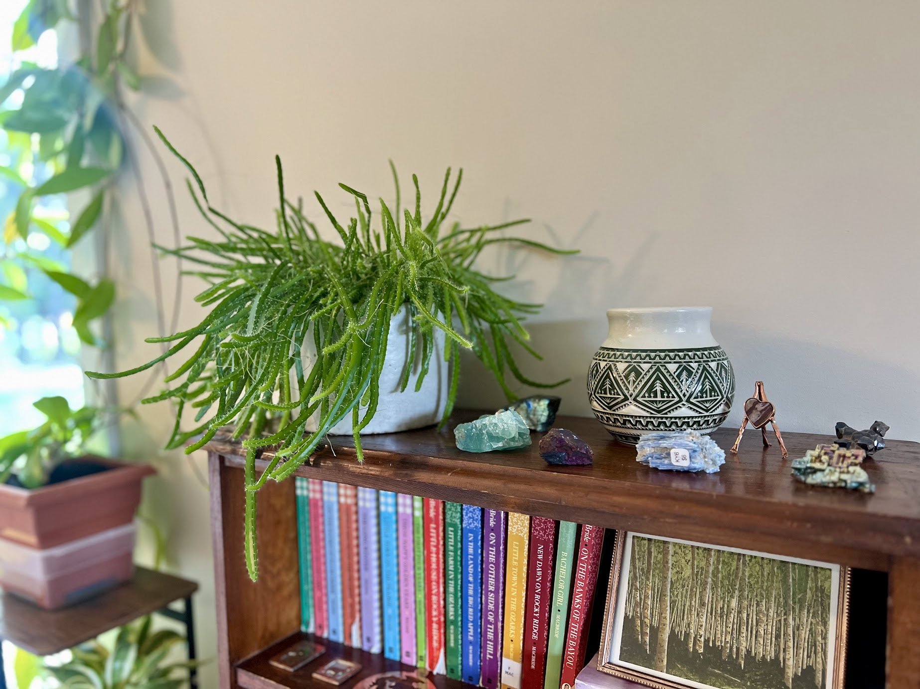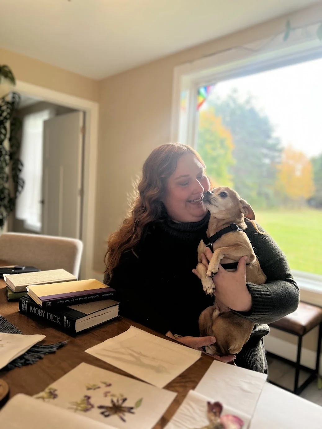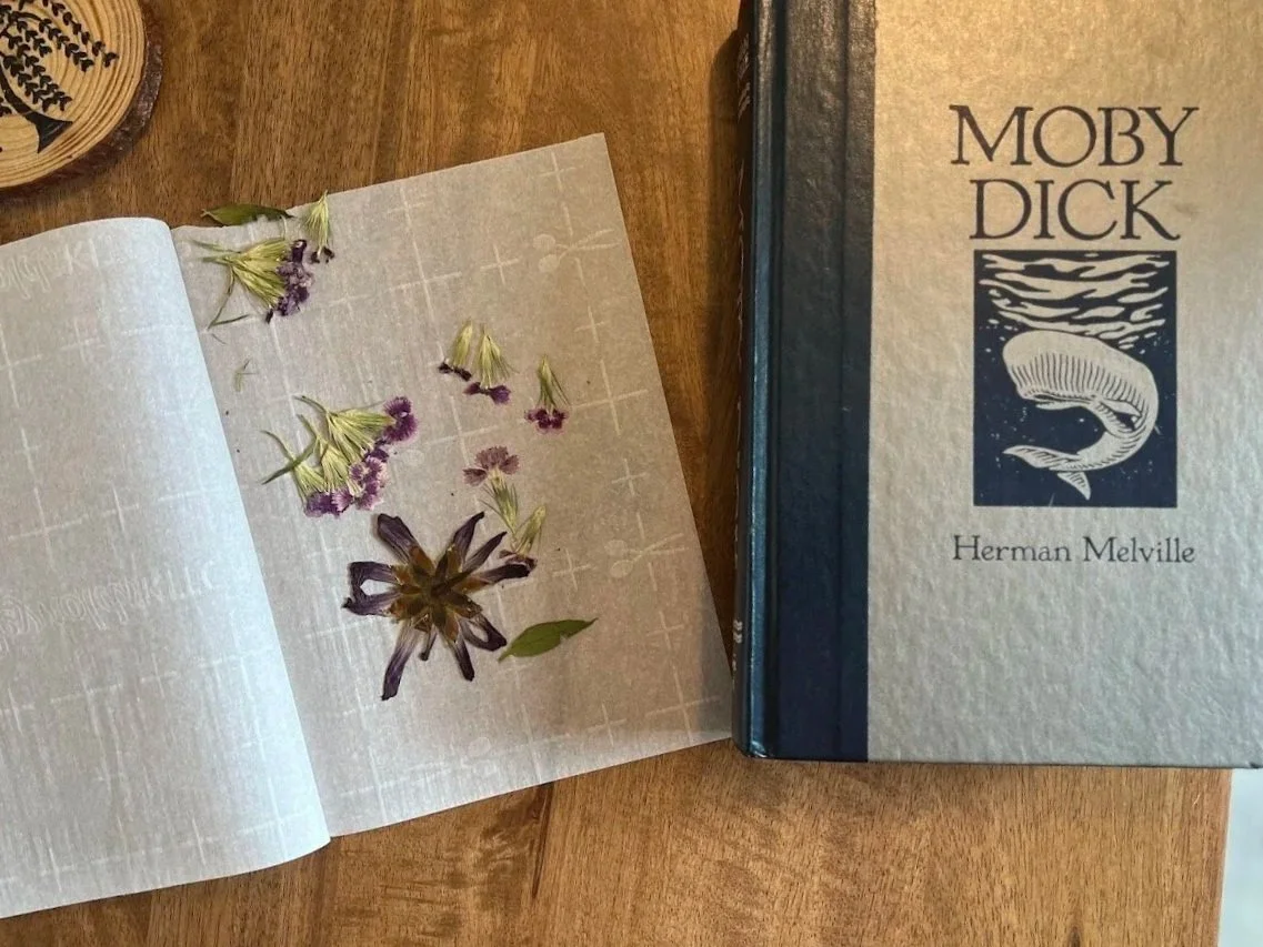 Ever a supporter of small makers, locally crafted treasures and trinkets are perched with quiet poise on tables and shelves. The lush houseplants throughout are a testament to Nikki’s inherent care and intuition for living things. Nothing is done en masse or without intention, and it is clear that Nikki’s exacting attention has created a home of presence and meaning. Even her first try at fresh pressed florals, from the summer farmers markets, has produced heirloom quality keepsakes tucked away in the pages of a hardcover edition of “Moby Dick”.